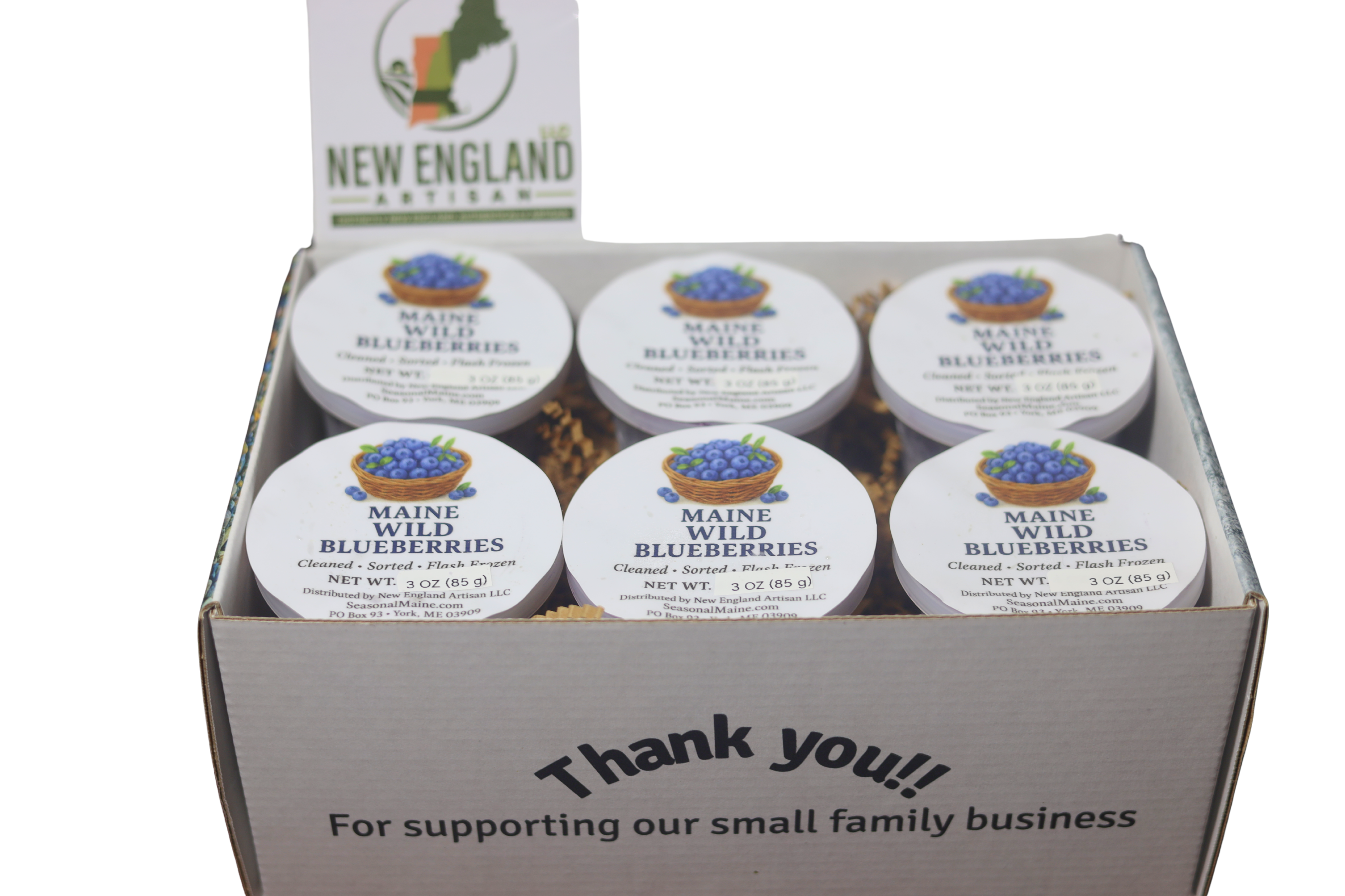 Experience the pure taste of nature with our Organic Wild Maine Blueberries, available in convenient 3oz packs bundled as a 6-pack.