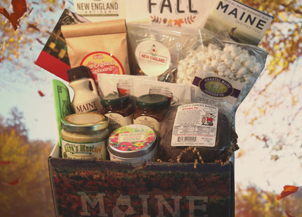 Fall Seasonal Gift Box - (Premium) brings a taste of Maine to any occasion. Packed with a delightful assortment of locally sourced treats, artisan goods, and regional specialties, this box makes a memorable gift for friends, family, or anyone who loves discovering something special.
